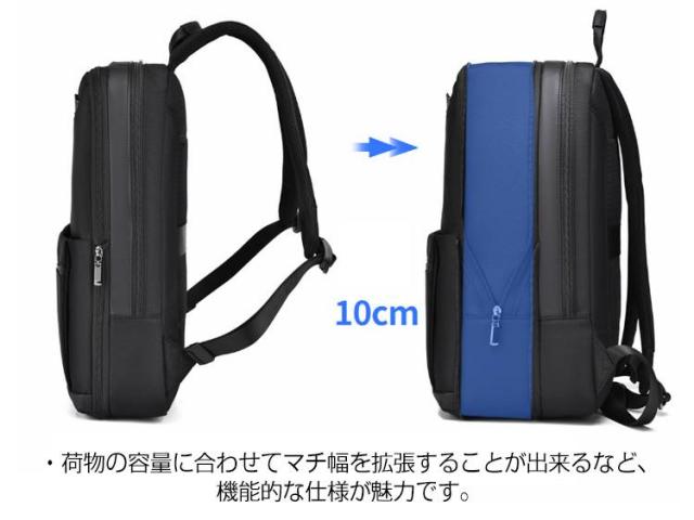 - 通勤や狭い店でも気にせず大きなリュックを背負ったままの 人が邪魔に感じて、マチが薄くて出来れば拡張可能なリュックを探していたらこちらに。クーポンやポイント1.5倍交換で実質2000円切る位、安かったので少し不安でしたが杞憂でした。 あまり固くてかさ張るものを入れると表面が摩擦で少しスレが 出来ましたが気を付ければ問題なし 外側に水筒用のポケットがあればいうことなしでした。 あとジッパーが綺麗です