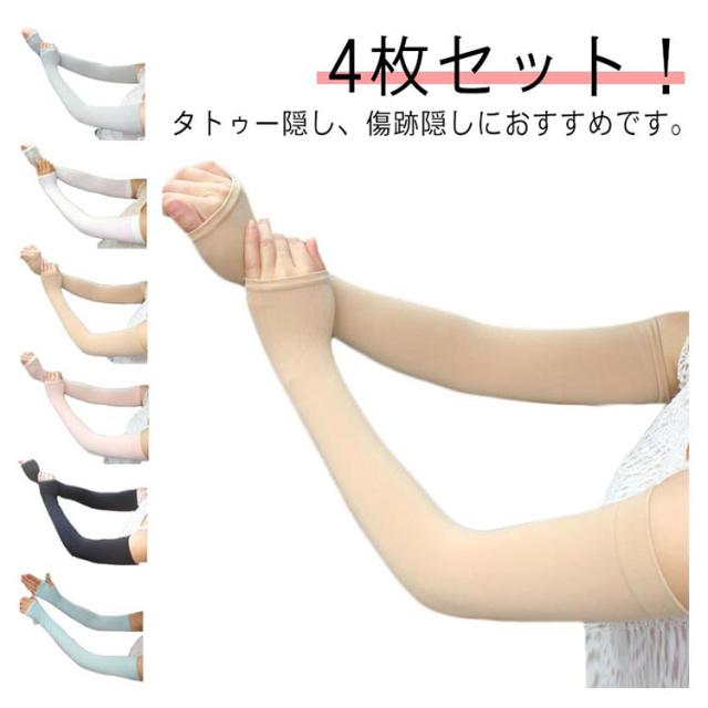 アームウォーマー 防止 無地 肌色 紫外線 ベージュ アームカバー 4枚セット!レディース 隠し 日焼け 防止 4枚セット!レディース タトゥー 伸縮 tatoo 傷跡 ロング 刺青 入れ墨 タトゥー隠し 刺青隠し アームカバー 通気性 ストレッチ uvカット