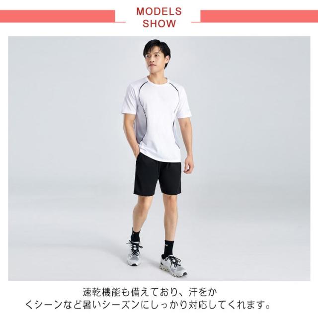 | 速乾機能も備えており、汗をかくシーンなど暑いシーズンにしっかり対応してくれます。 男女問わずユニセックス着用可能です。 運動着としてはもちろん、カジュアルな日常着としても活躍すします。 シンプルながらもスタイリッシュな印象を与えます。 | |