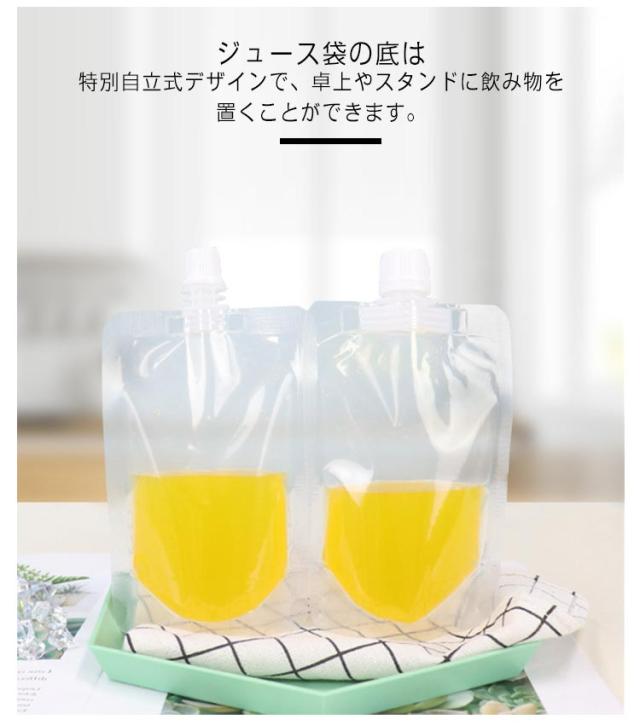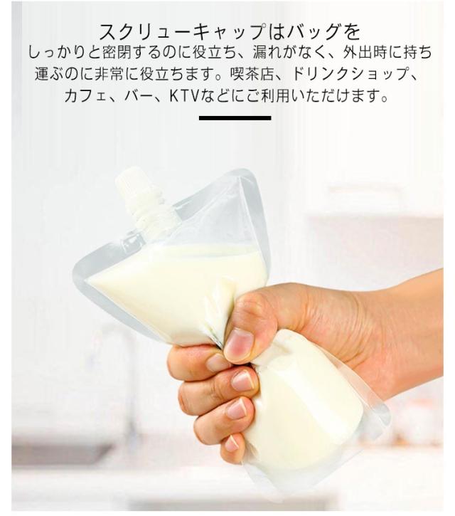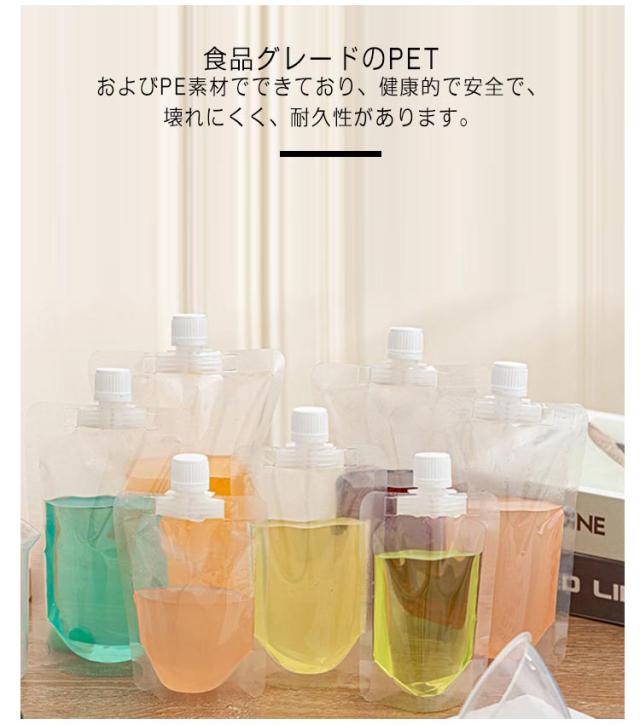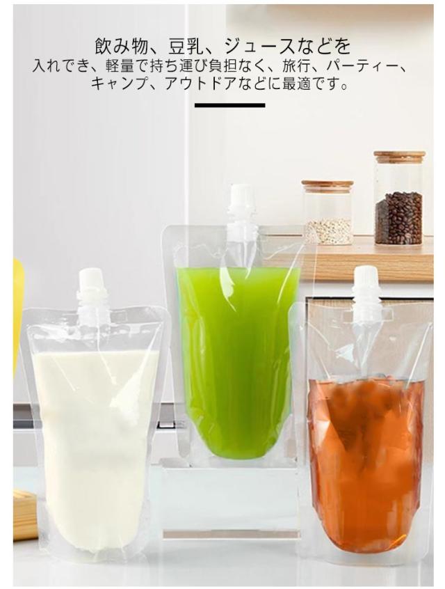 | 飲み物、豆乳、ジュースなどを入れでき、軽量で持ち運び負担なく、旅行、パーティー、キャンプ、アウトドアなどに最適です。 食品グレードのPETおよびPE素材でできており、健康的で安全で、壊れにくく、耐久性があります。 ジュース袋の底は特別自立式デザインで、卓上やスタンドに飲み物を置くことができます。 スクリューキャップはバッグをしっかりと密閉するのに役立ち、漏れがなく、外出時に持ち運ぶのに非常に役立ちます。 喫茶店、ドリンクショップ、カフェ、バー、KTVなどにご利用いただけます。 | |