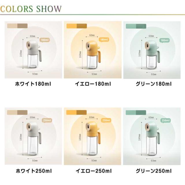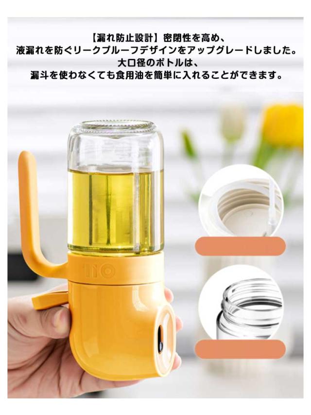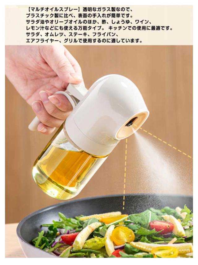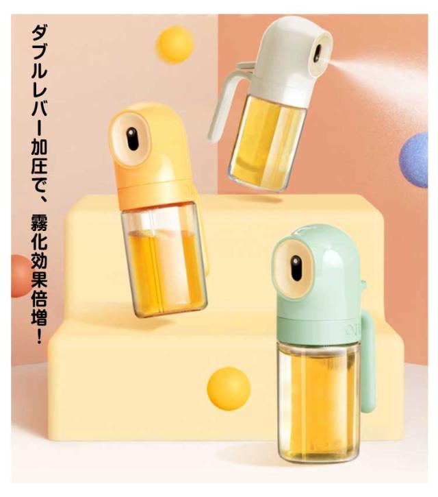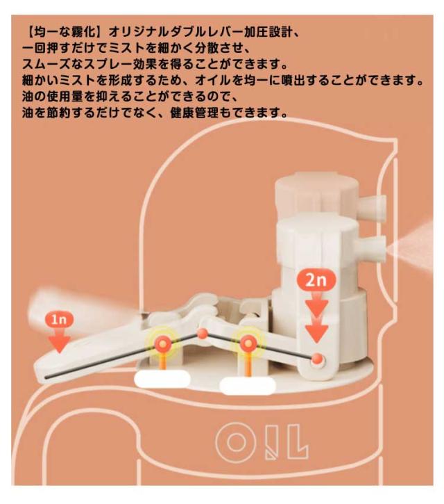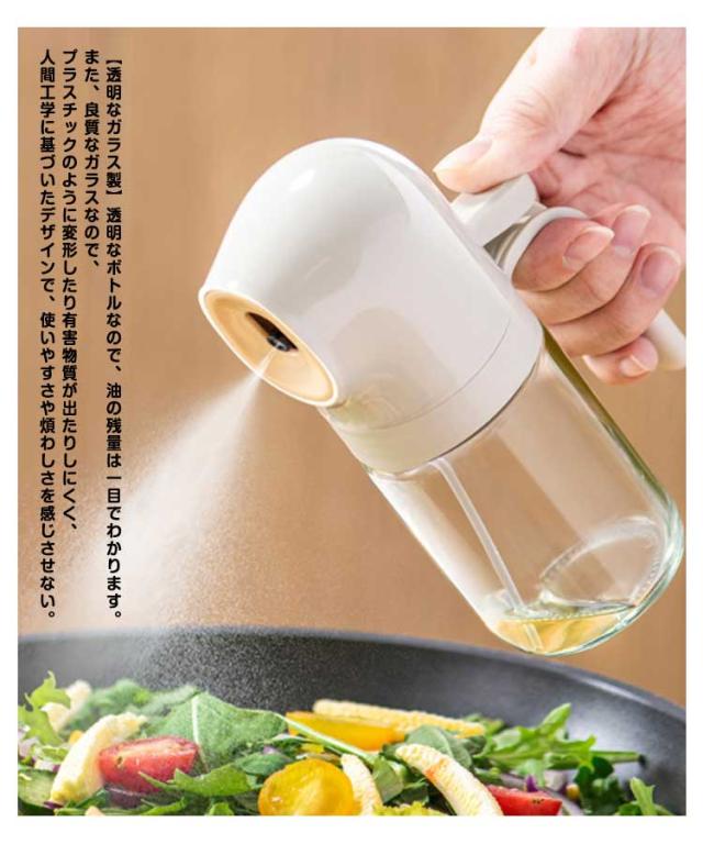 | ダブルレバー加圧で、霧化効果倍増! 【均一な霧化】オリジナルダブルレバー加圧設計、一回押すだけでミストを細かく分散させ、スムーズなスプレー効果を得ることができます。 細かいミストを形成するため、オイルを均一に噴出することができます。油の使用量を抑えることができるので、油を節約するだけでなく、健康管理もできます。 【使いやすい】ハンドル付きで、滑ることなく、持ち上げたりするのに便利です。手前のレバーを押すだけの簡単操作、子供でも手軽にご利用いただけます。可愛い見た目、インテリアにも馴染みやすいです。 【徹底的に油を使い切る設計】ストローは油スプレーの端にあるので、油を使い切ることができます。また、古い油と新しい油が混ざる心配もありません。 【漏れ防止設計】密閉性を高め、液漏れを防ぐリークプルーフデザインをアップグレードしました。 大口径のボトルは、漏斗を使わなくても食用油を簡単に入れることができます。 【透明なガラス製】透明なボトルなので、油の残量は一目でわかります。また、良質なガラスなので、プラスチックのように変形したり有害物質が出たりしにくく、人間工学に基づいたデザインで、使いやすさや煩わしさを感じさせない。 【液垂れしない】液垂れしにくいロングノズル、清潔に保たれ、こぼれにくい。 オイルミストの均一な広がりと安定した仕上がりが、料理をより簡単にします。 【マルチオイルスプレー】透明なガラス製なので、プラスチック製に比べ、表面の手入れが簡単です。サラダ油やオリーブオイルのほか、酢、しょうゆ、ワイン、レモン汁などにも使える万能タイプ。 キッチンでの使用に最適です。サラダ、オムレツ、ステーキ、フライパン、エアフライヤー、グリルで使用するのに適しています。 | |