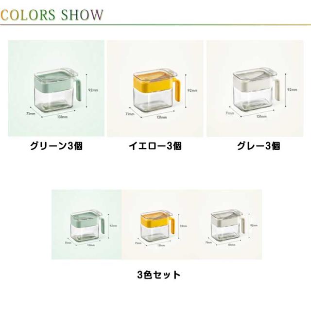 保存容器 ガラス製 防塵 調味料入れ 使いやすい フタ付き ワンタッチ スプーンが埋もれない♪ 湿気防止 スプーンが埋もれない♪ 砂糖 塩入れ 塩 保存 調味料ケース 調味料入れセット 3個セット 粉物入れ 容器 小さじスプーン付