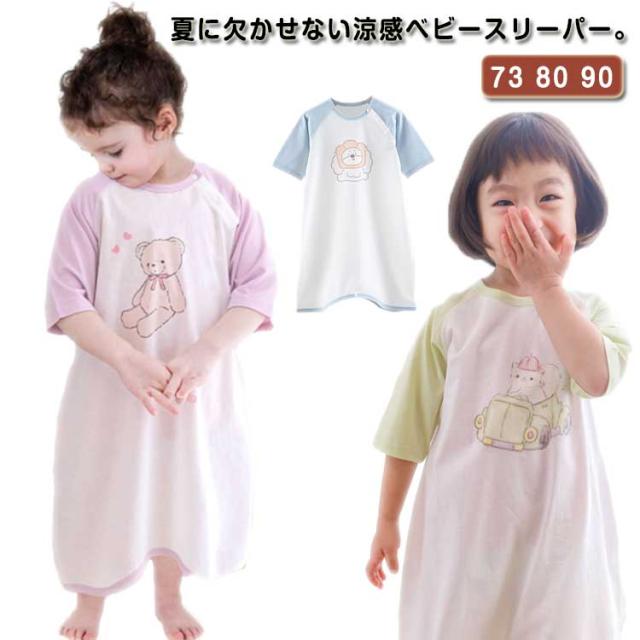 ベビー 80 半袖 90cm 夏 スリーパー 涼感 綿コットン 涼しい ベビースリーパー 73 夏 春 オールインワン 赤ちゃんスリーパー ドレス型 ルームウェア ナイトウェア 寝巻き 男の子 女の子 送料無料 つなぎ ベビー 夏
