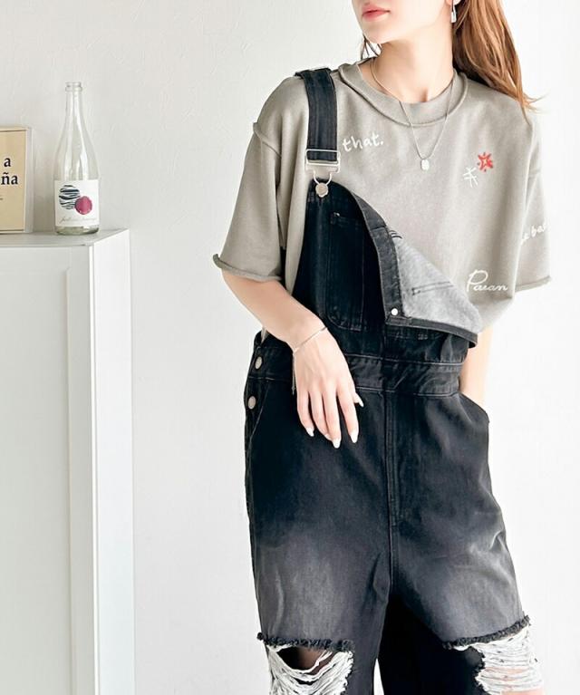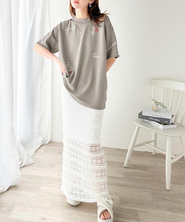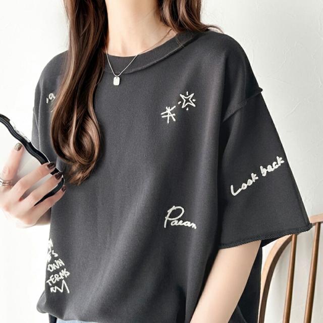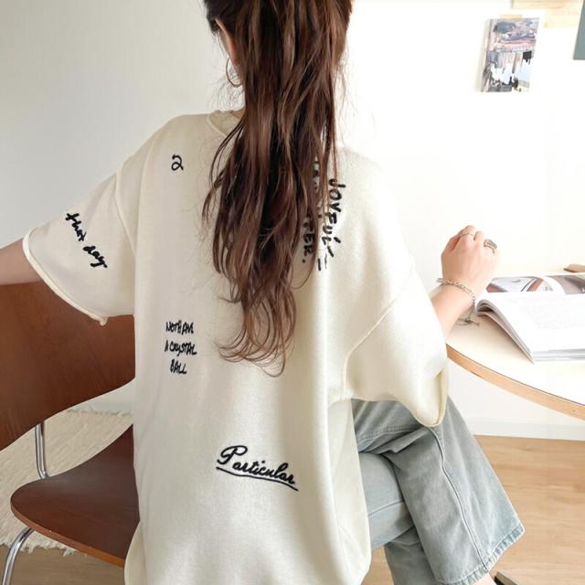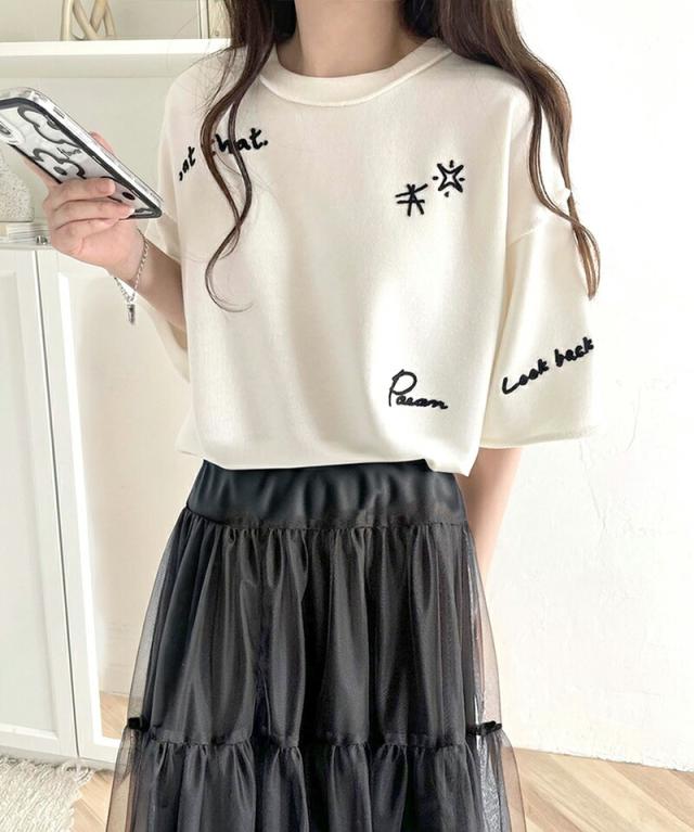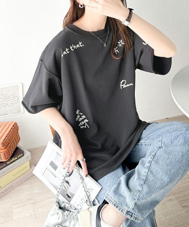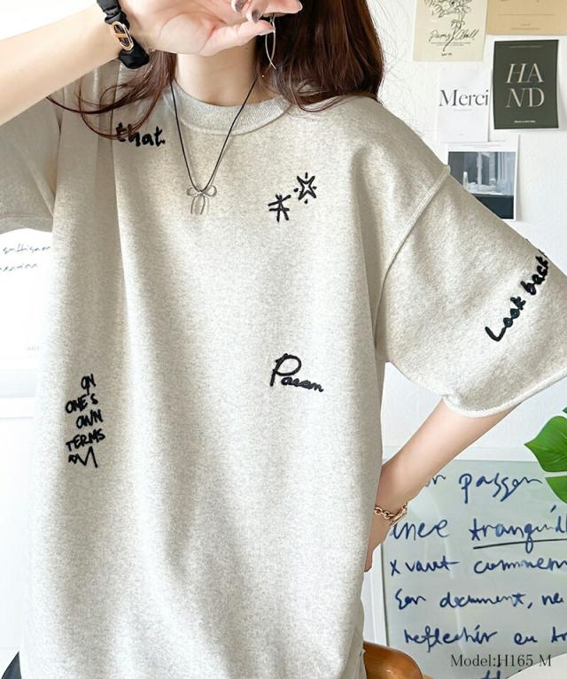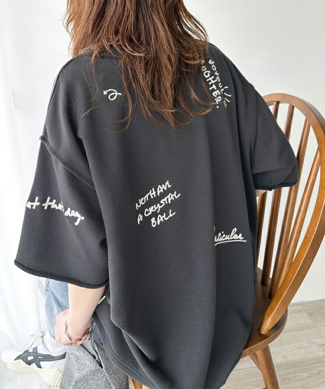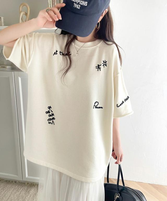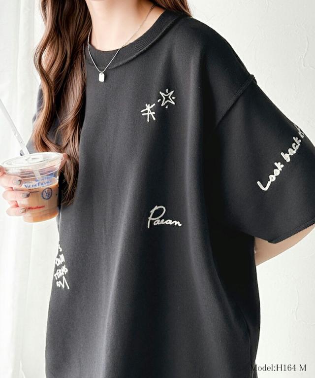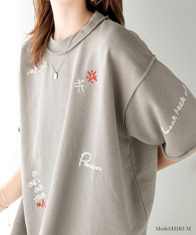 ★後ろ姿までぬかりなくオシャレにキマる。ランダム刺繍裏毛ハーフスリーブTシャツ★