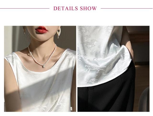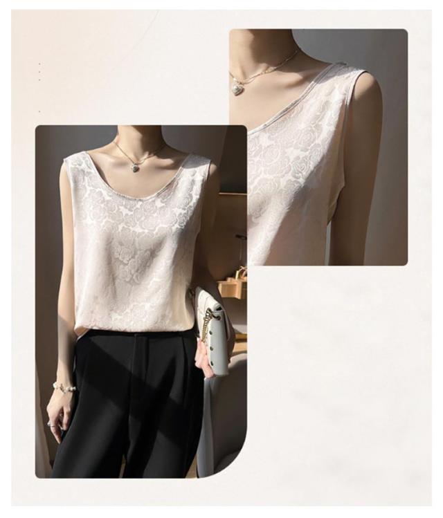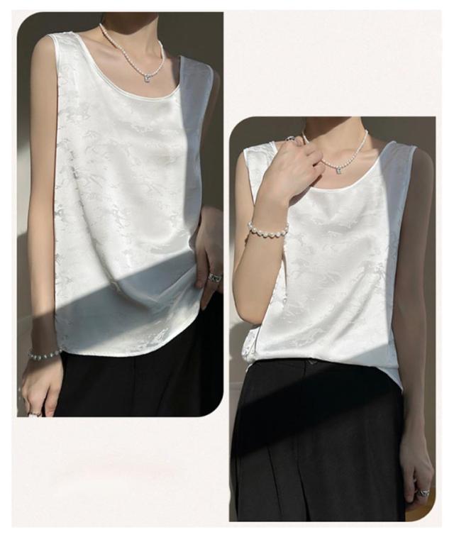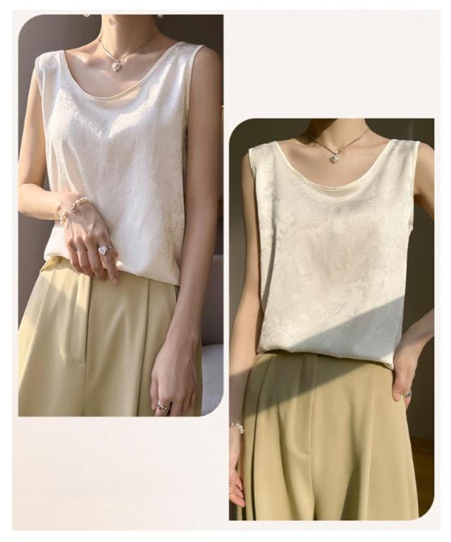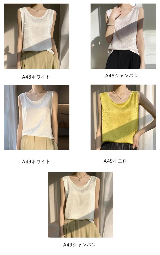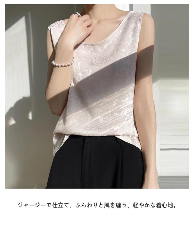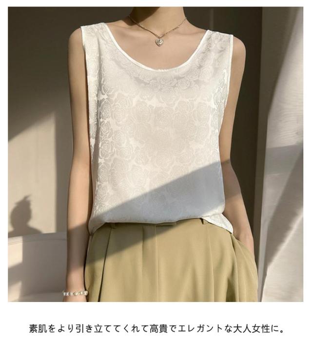 タンクトップ シルク サテン キャミソール レディース インナー Uネック プリント 刺? 柄 ブラウス シャツ ノースリーブ トップス 大きいサイズ ゆったり シャツブラウス 薄手 ショート丈 光沢感 高級感 上品 大人 重ね着 肌着 敏感肌
