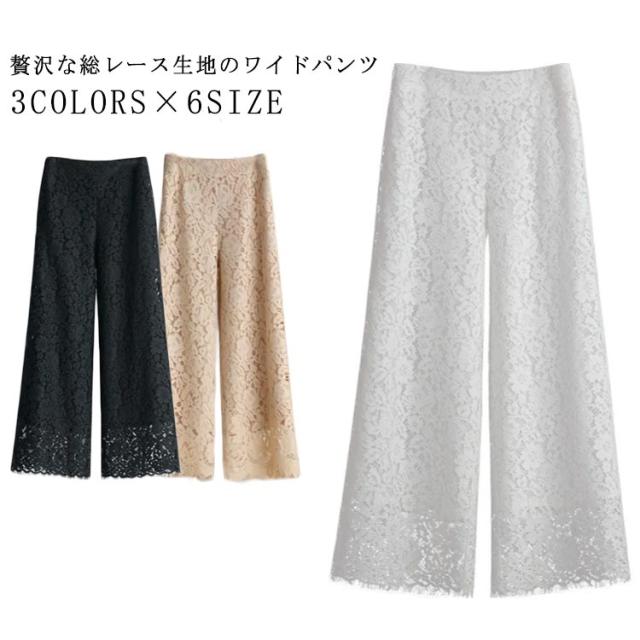 | 3COLORS×6SIZE 贅沢な総レース生地のワイドパンツ | |
