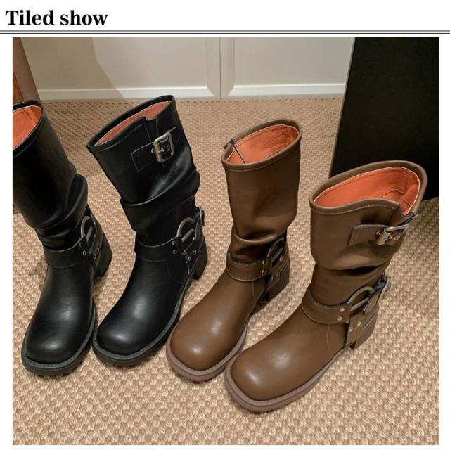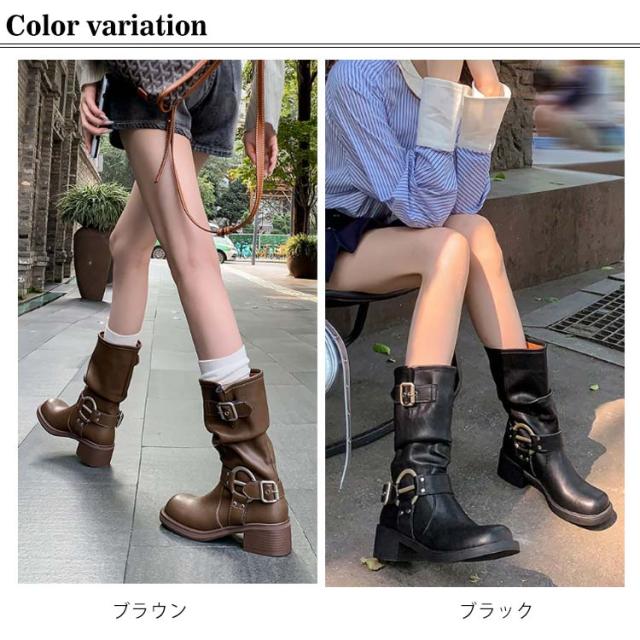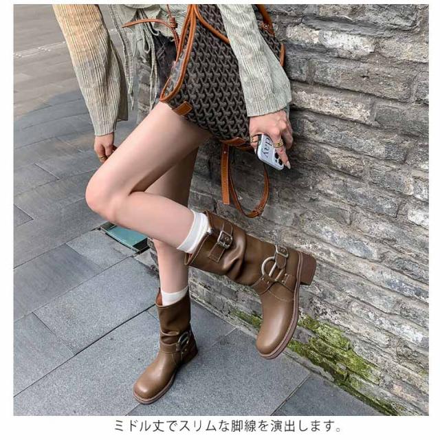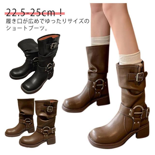 エンジニアブーツ レディース ゆったり ショートブーツ ブーツ おしゃれ 厚底 美脚 ミドルブーツ 大きいサイズ 歩きやすい 滑り止め ワイド 靴 秋冬 春靴 美脚ブーツ PU 靴 可愛い 痛くない カジュアル きれいめ ブラック ブラウン 大人 女性 ギフト プレゼント 送料無料