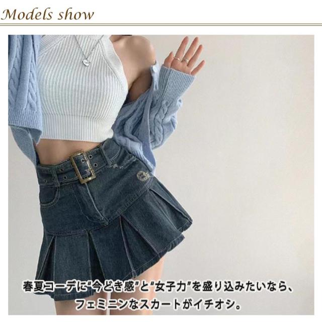 | 美脚効果抜群のミニ丈プリーツスカート! 春夏コーデに“今どき感”と“女子力”を盛り込みたいなら、フェミニンなスカートがイチオシ。 デニムの素材は甘すぎないコーデをできます。 普段着、街着、通学、出勤、気軽なデート、色々な場合に役立ちます。 | |