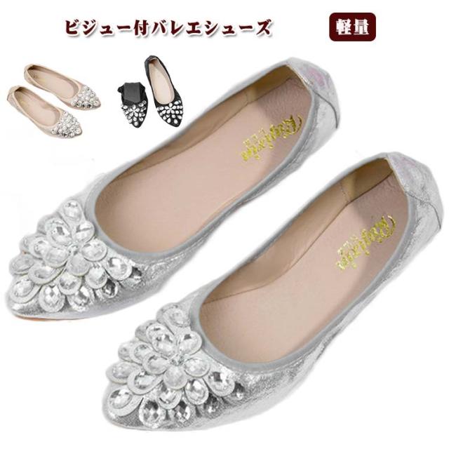 パンプス 痛くない バレエシューズ ビジュー レディース ぺたんこ フラットシューズ キラキラ グリッター レディース靴 疲れにくい ペタンコ コンフォートシューズ 歩きやすい 軽量 おしゃれ 上品 かわいい シンプル 春 夏 秋