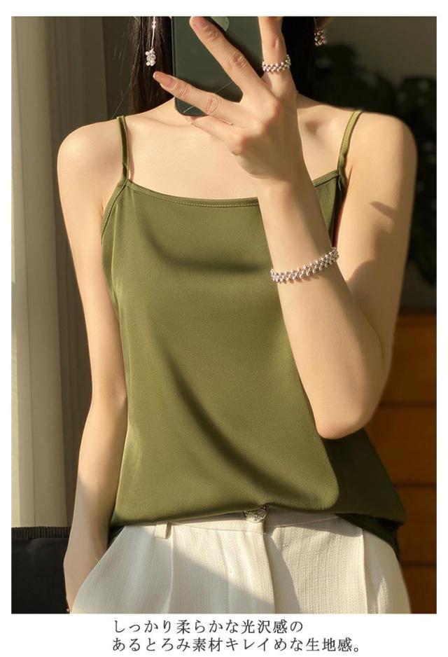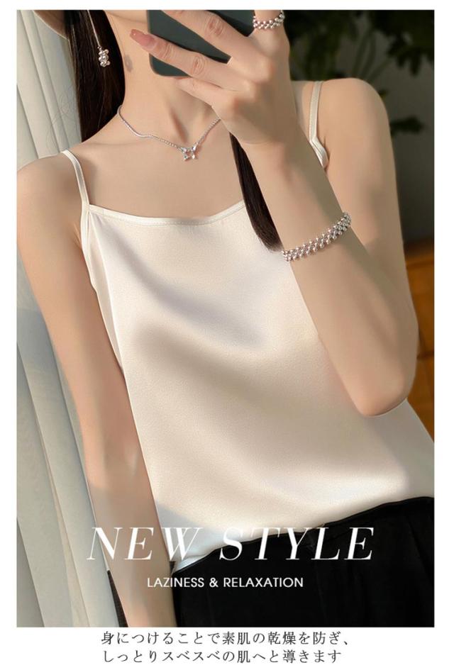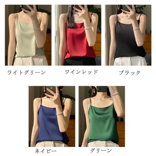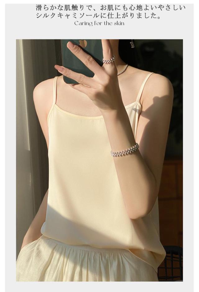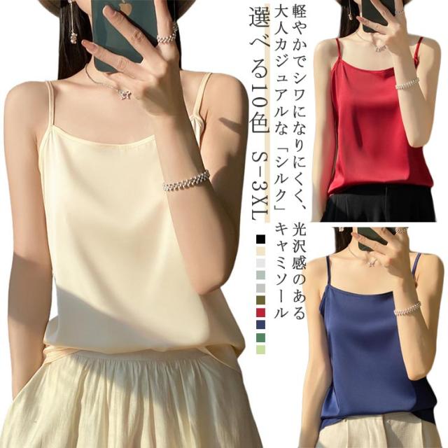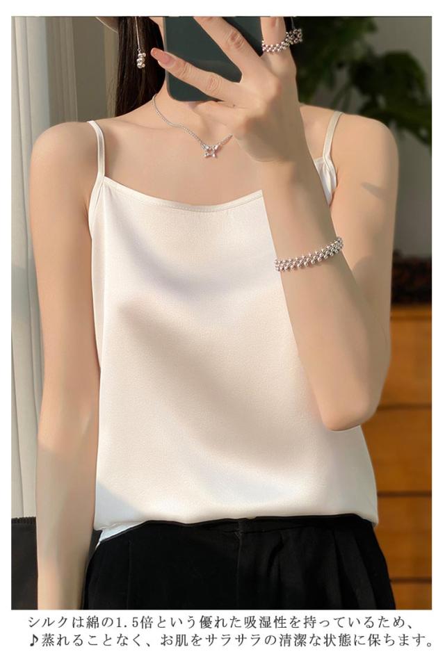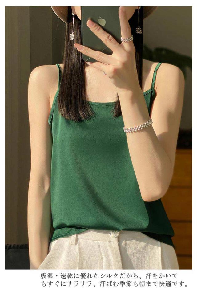 シルク サテン キャミソール タンクトップ スクエアネック 細 ストラップ レディース インナー ノースリーブ 下着 大きいサイズ トップス ショート丈 ブラウス 袖なし アンダーウェア ゆったり 肌着 重ね着 上品 部屋着 透けない