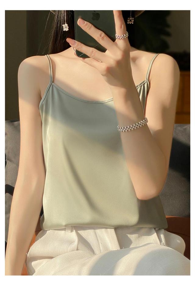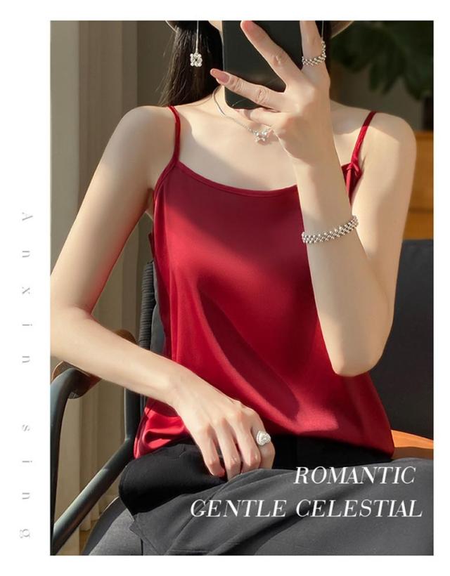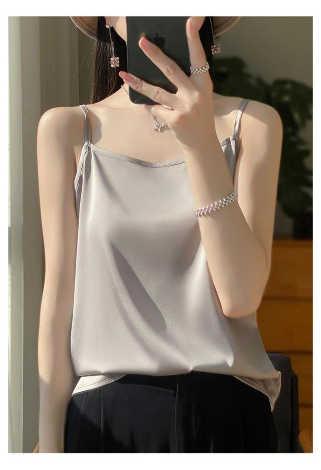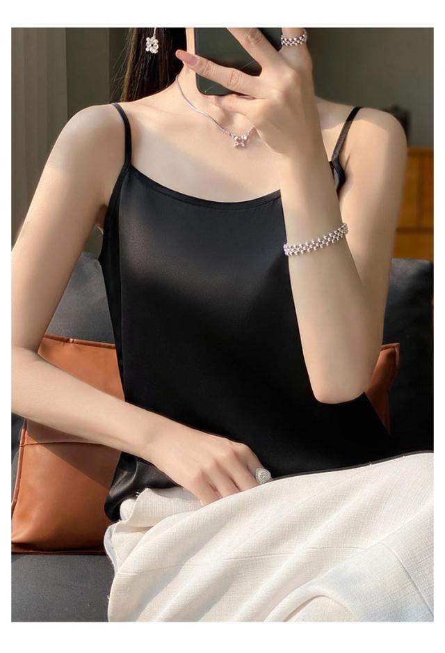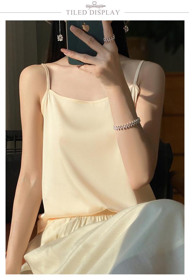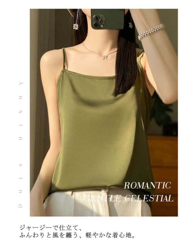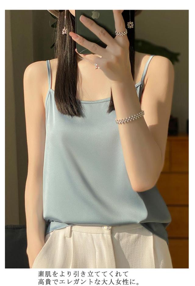 シルク サテン キャミソール タンクトップ スクエアネック 細 ストラップ レディース インナー ノースリーブ 下着 大きいサイズ トップス ショート丈 ブラウス 袖なし アンダーウェア ゆったり 肌着 重ね着 上品 部屋着 透けない