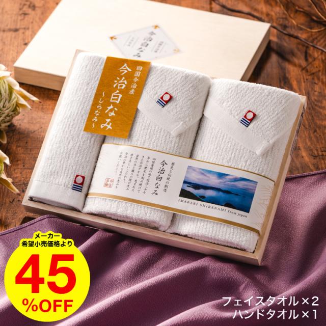 母の日 ギフト タオル 今治白なみ〜しらなみ〜 木箱入りタオルセット フェイスタオル×2・ハンドタオル 香典返し 粗供養 タオルギフト 割引 出産内祝い ご挨拶 引越し 写真入り メッセージカード無料 名入れ 贈答品 日用品 gws 入学内祝い お返し