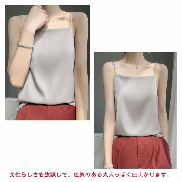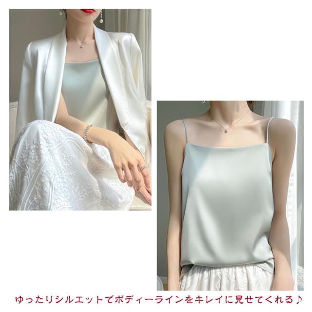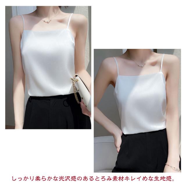 サテン キャミソール タンクキャミ 春夏 レディース シルク インナー トップス ノースリーブ 大きいサイズ サテンキャミソール ナローストラップ おしゃれ シルクタッチ 楽ちん 長め 夏物 おしゃれ ブラウス 袖なし