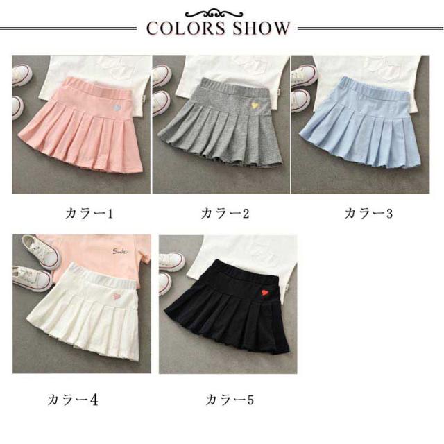 プリーツスカート キッズ ゴルフウェア ミニスカート こども服 ミニスカート ミニ丈 ショート丈 スカート スポーツウェア テニスウェア インナーパンツ付き ハート刺繍 ワンポイント 女の子 100cm 110cm 120cm 130cm 140cm 150cm 160cm 170cm
