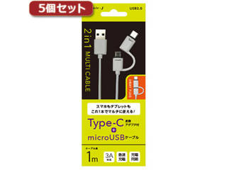 エアージェイ 【5個セット】 エアージェイ TYPE-C 変換アダプター付きマイクロUSBケーブル WH UKJ-MC100WHX5