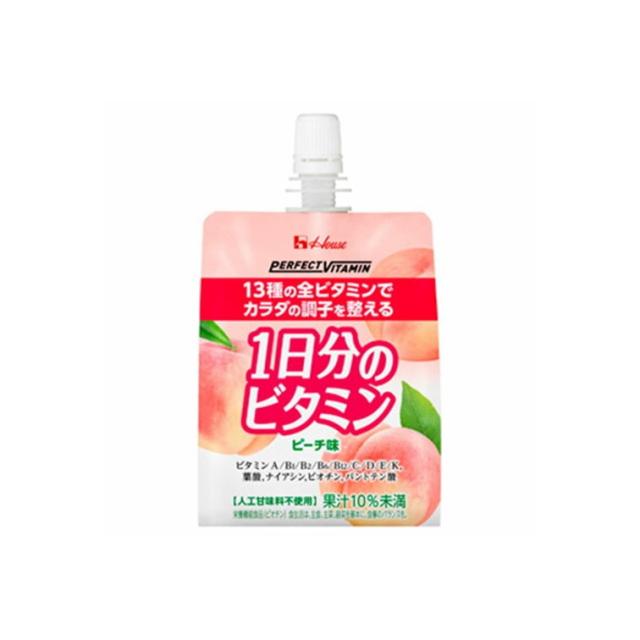 ・栄養素等表示基準値(2015)に基づき、ビタミン全13種類を配合。・食物繊維を4g配合・1日分のビタミン全13種類と食物繊維4gを1袋で手軽に補給することができる。・人工甘味料不使用で果実らしい美味しさのピーチ味。(果汁10%未満)・手軽で持ち運びに便利でスッと飲みやすいスパウト付パウチ