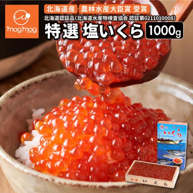 送料無料 マルア阿部商店 北海道産 無添加 特選 塩いくら 1kg 秋鮭 鮭卵 魚卵 いくら丼 海鮮丼 海産物