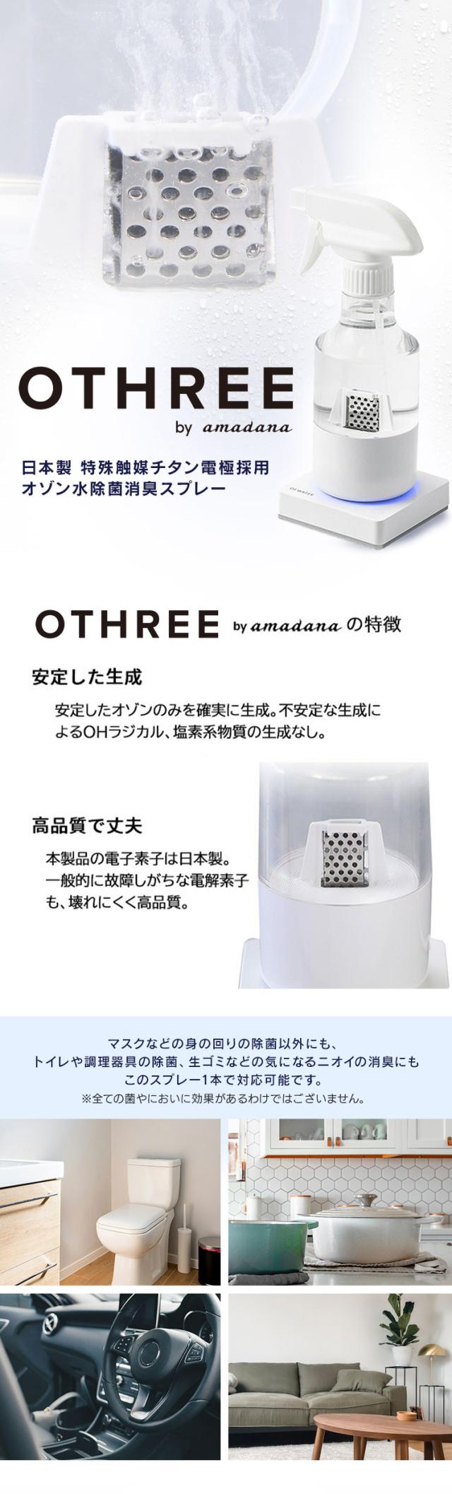 除菌消臭スプレー オゾン水 除菌スプレー OTHREE by amadana 除菌消臭スプレー ホワイト ABC-03 消臭スプレー アマダナ オゾン水除菌消臭スプレー デザイン家電 おしゃれ 除菌 消臭 リビング キッチン ペット用品 車 送料無料