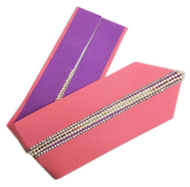 重ね衿 伊達襟 パール&ラインストーン(チェコガラス)付き 正絹 ピンク紫 振袖 成人式 卒業式 袴 着物 きもの 振袖用 はかま 重ねえり