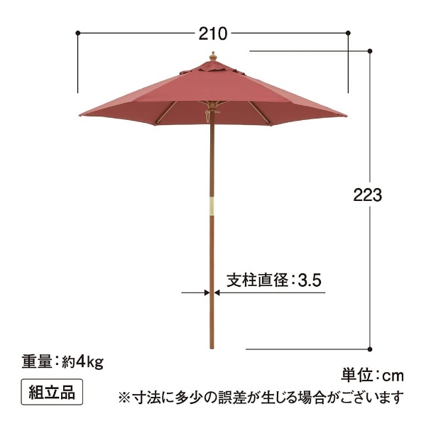 ウッドパラソル 2.1m エンジ