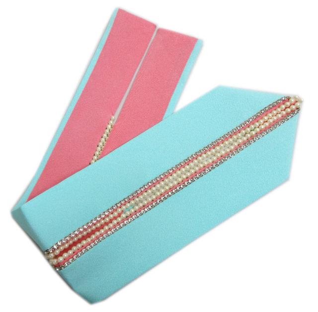 重ね衿 伊達襟 パール&ラインストーン(チェコガラス)付き 正絹 水色ピンク 振袖 成人式 卒業式 袴 着物 きもの 振袖用 はかま 重ねえり