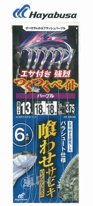 ハヤブサ 落し込み つくつくベイトパープル 6本鈎 SS439 針10号 ハリス12号 幹糸12号 / 仕掛け 釣具 メール便可