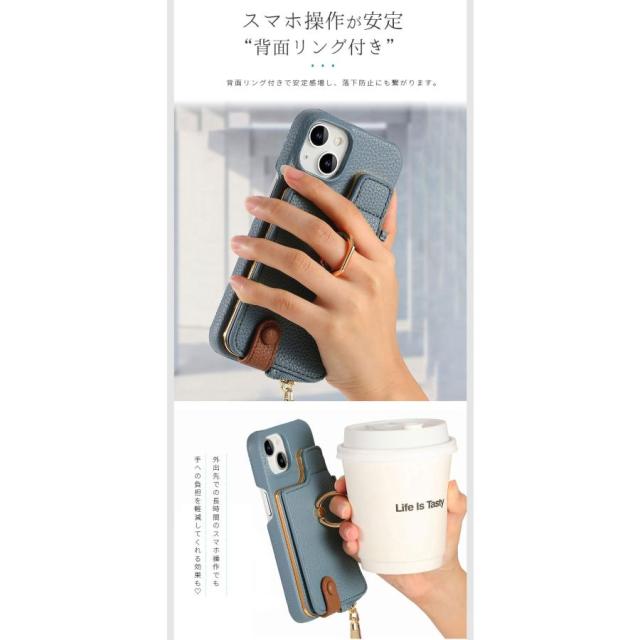 ・背面リング付き 背面リング付きで安定感増し、落下防止にも繋がります。 操作性が広がり、更にリングを立てばスタンドに。 ・カードポケット付き カバーの背面に便利なカードポケットが搭載しており、クレカや名刺などを収納することが可能です。 ・ファスナーポケット付き ファスナー式ポケットでおつり用の硬貨や鍵などの小物もまとめて持ち運べます。 ・精密なカットアウト ケースを装着したままで、純正の各種ケーブルの接続や写真撮影、ボタンの操作が可能です。