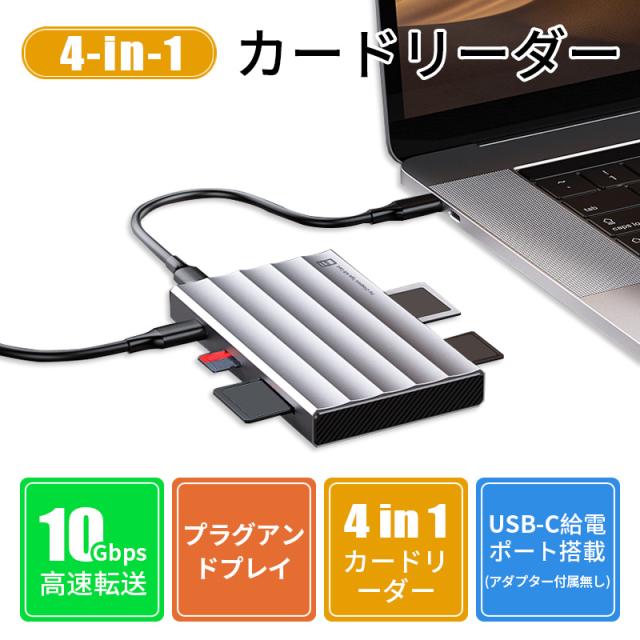 Hanye 4in1 カードリーダー USB 3.2 Gen2 SD/TF(Micro SD)/ CFA/CFBカードリーダ 高速転送 同時読み書き アルミ合金 高耐久 1年保証 ネコポス送料無料 ポイント消化