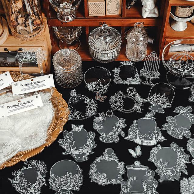 クリアシール 透明シール ボトル 瓶 鳥籠 シール 大きい ガラス瓶 海外 コラージュ 素材 透明 ステッカー ホワイト 白 PET素材 20枚 白インク クリアステッカー 耐水 花柄 鳥かご 瓶 シール ボトルシール 花瓶 香水瓶 手芸 ハンドメイド 資材 素材 手帳 日記 DIY