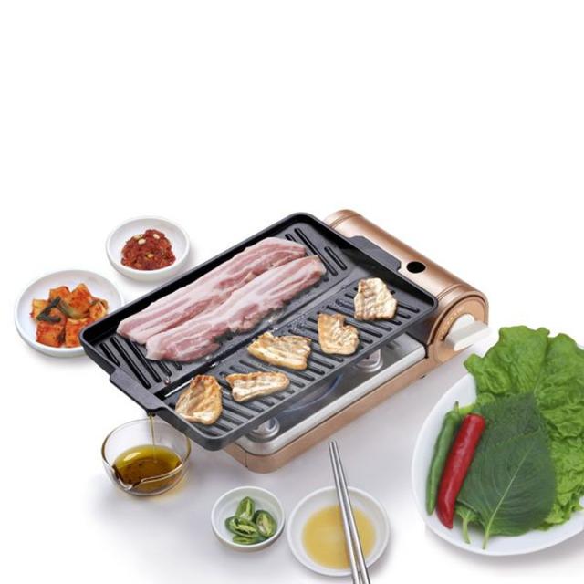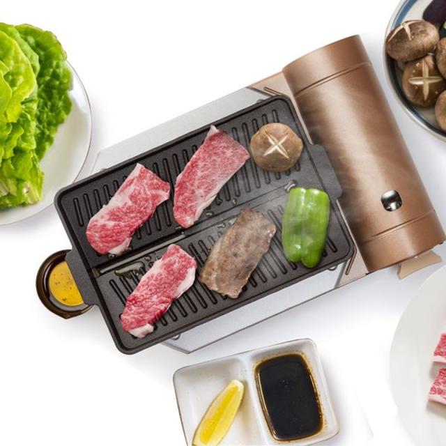 ●お肉の余分な油を落とす溝付プレートを採用