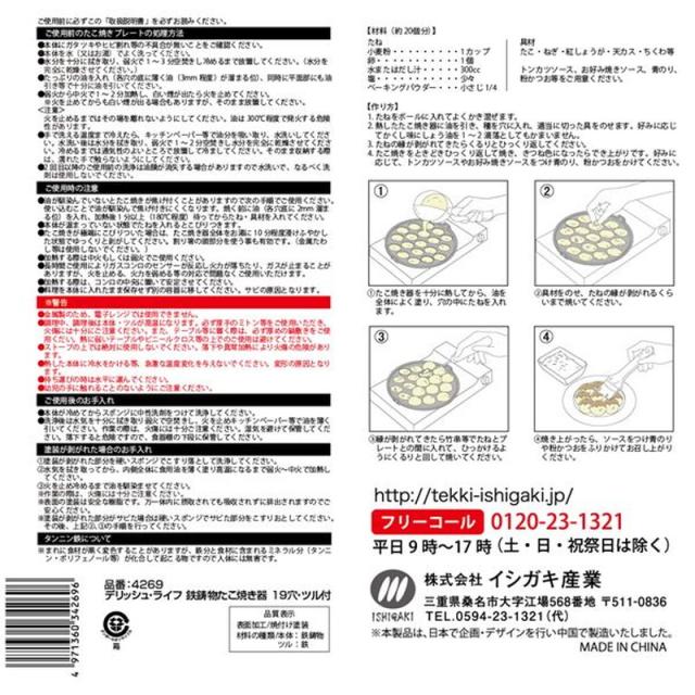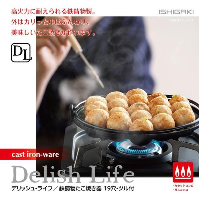 たこ焼き器 タコ焼き機 19穴 鉄鋳物製 カセットコンロ ガスコンロ ガス火専用 ツル付き