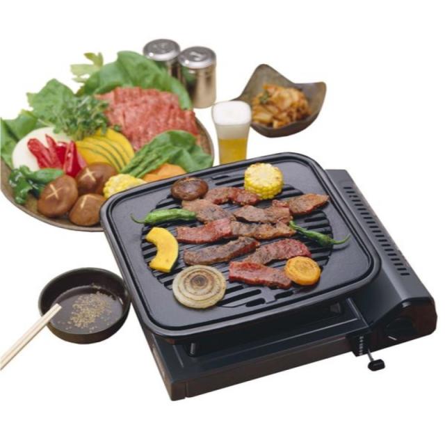 カセットコンロ用焼肉グリル 中 鉄鋳物製 29x27cm ガス火専用 煙が出にくい 余分な油を落とす 受け皿付き