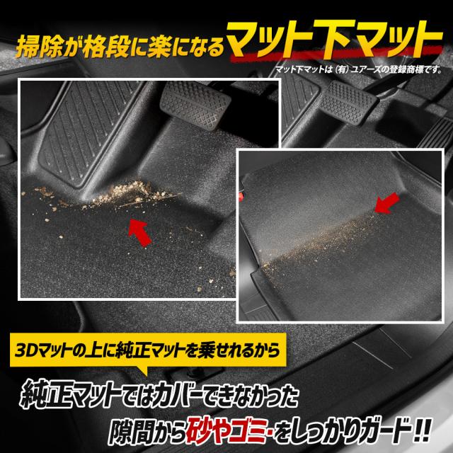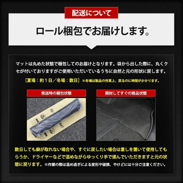 ■元に戻りやすい素材ですので、到着時に型が付いている場合は平らな場所で数日置いてください。 それでも戻らない場合は、ドライヤー温風を当てながら手で反対側に丸めて調整してください。 ■適合車種以外の車両には使用しないで下さい。 ■車両側と純正マットが留具リング(グロメット)などでしっかり固定されているか確認して下さい。 ■車両側に本製品を固定する付属のマジックテープは必ず推奨位置に貼り付けてご使用下さい。 ■事前にアクセルペダルやブレーキペダル操作を行ない運転操作に支障がないかをご確認の上、ご使用下さい。 ■社外マットご使用の場合、ぴったりと合わない場合がございます |