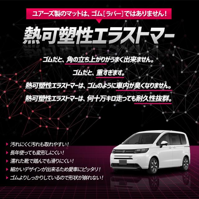 一緒に欲しかったが叶う、お得なセット商品です♪ どの部位のマットもフロアをスキャンして製作しているのでピッタリフィット! 車体にあった形状で、汚れや水から車内をしっかりカバーしてくれます。 車内のゴミや砂をガッチリガード!! ・隙間なくフィットするので、ゴミや砂が直接車両床に落ちることはありません。 ・3Dデザインなので縁の数センチの立ち上がりで水や汚れをしっかりキャッチ! 完全防水なのでお手入れも簡単! ・水や汚れは軽いものならウエスなどで拭くだけでOK! ・全面的に汚れた場合は丸洗いも可能なので衛生的です。 ■新素材の熱可塑性エラストマー(TPE)を使用。 ・弾力があり、曲げたりすることも可能なので、お車からの取り外しも容易です。 ・ゴムのように車内が臭くなりません。 ・耐久性抜群なので何十万キロ走っても大丈夫です。 |