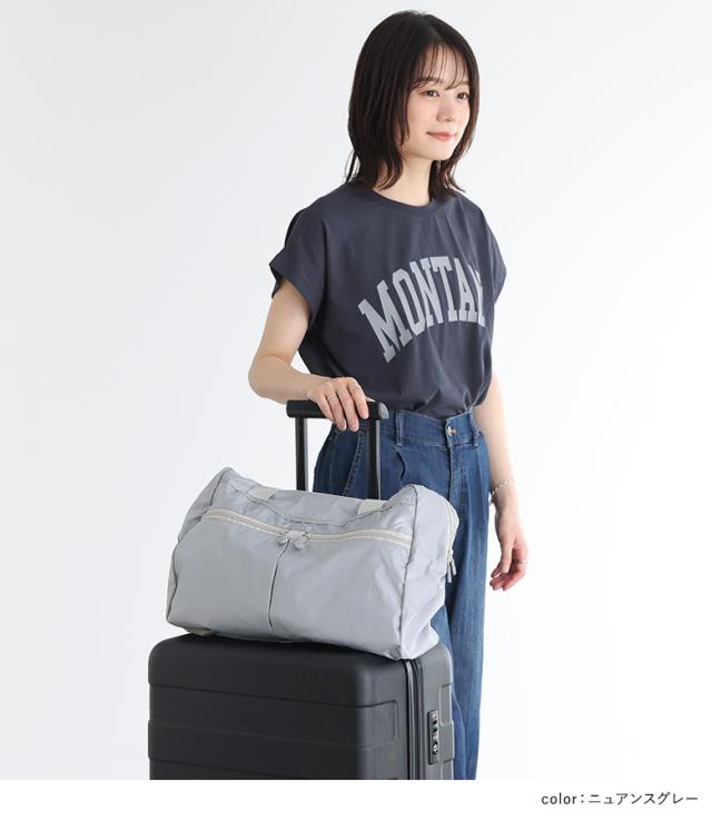 ■デザイン コンパクトに収納できるボストンバッグ。スーツケースに取り付けられる仕様で、持ち運びにも便利なアイテム。折り畳んで収納できるためサブバッグとして使用でき、旅行やアウトドアなどでも活躍。軽くて持ち運びやすく、たっぷりのマチで容量もあるサイズ感です。フロント部分にはファスナーポケット付きで荷物の仕分けもしっかりできます。開口部はファスナー仕様。 ■素材 軽く、シャカシャカとした生地感のポリエステル素材。 ■コーディネート シンプルなデザインで気軽に使い回せるバッグです。コンパクトに持ち運び&スーツケースにもONできるため、旅先やアウトドアシーンで荷物が増えた時などにも活躍します。 |