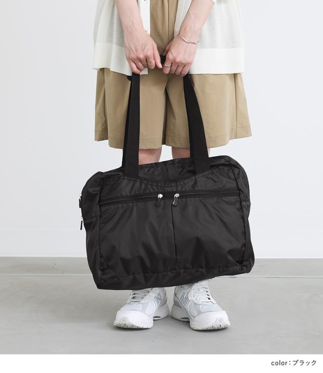 『コンパクトボストンバッグ』※メール便可※【10】[ボストンバッグ バッグ レディース サブバッグ キャリーオン 鞄 折りたためる コンパクト 軽量 軽い 仕分け 持ち運び マチ ファスナー 旅行 アウトドア シンプル]