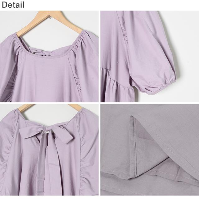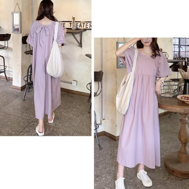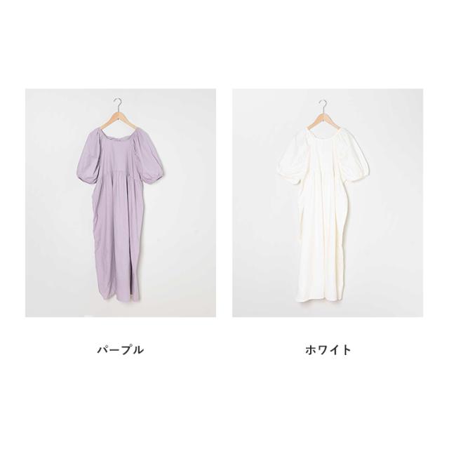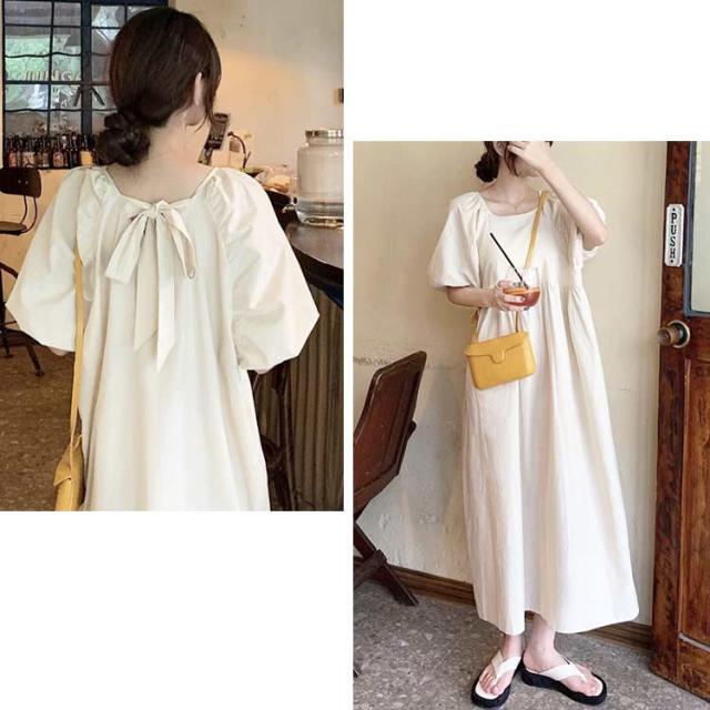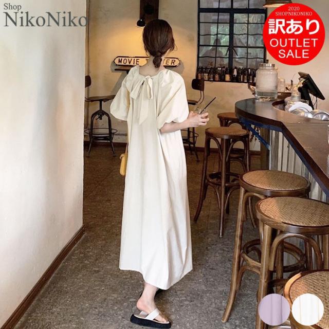 全品送料無料一部除く アウトレット 訳あり バックリボン パフスリーブワンピース 【即納】 ロングワンピース 半袖 バルーンスリーブ レディース 韓国 プチプラ トレンド 人気 大人女子 綺麗め シンプル カジュアル Instagram