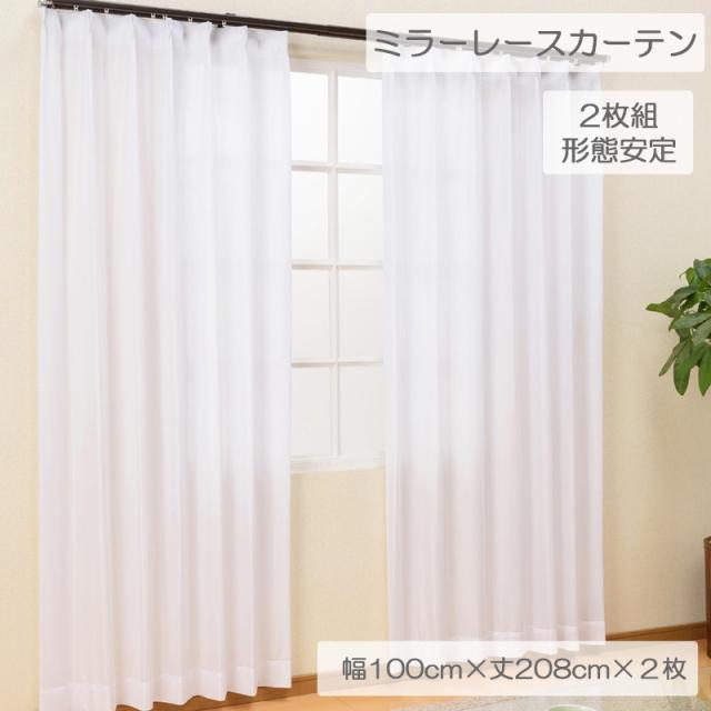 ミラーレースカーテン 幅100cm×丈208cm2枚組 商品名:L97 形態安定加工