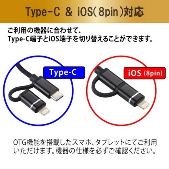 OTG2IN1CBK Android(Type-C)と iPhone/iPad(8pin)に対応するOTGケーブル