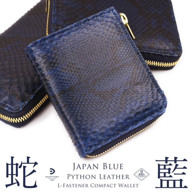 ミニ財布 L字ファスナー 二つ折り財布 蛇革 本革 風水 開運 金運 財布 ダイヤモンドパイソン ニシキヘビ 蛇皮 財布 藍染め 手染め ジャパンブルー 日本製 KOI コーアイ BAGGY PORT バギーポート メンズ 革小物 インディゴ 青 紺 ネイビー パイソン 蛇柄 ギフト プレゼント
