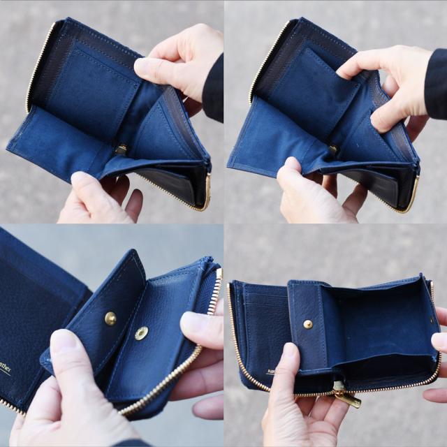 内装には、藍とインディゴで染色した国産牛革で手触りの良いスムースレザーを使用し、外側・内側を藍染にすることで存在感のある美しい仕上がりに。裏地には高級感のあるスエード生地を使用することでカードなどの取り出しがスムーズ。また、ファスナーはエクセラファスナーを使用。滑らかで長年の使用にも耐えうる耐久性を兼ね備えてます。希少な革を永く使っていただけるように、革・生地・縫製・金具など細部にいたるまでこだわった、日本の技術を集結させた逸品です。