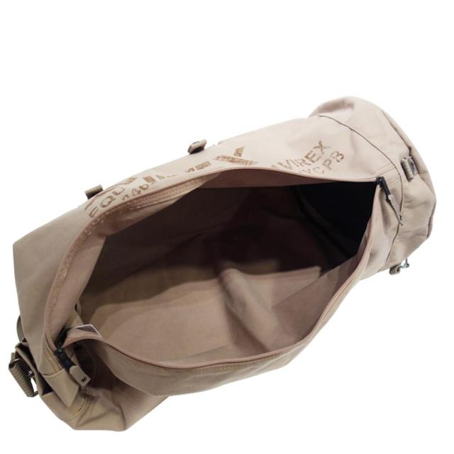 シリーズ共通の擦れプリントをアクセントとした表地も然る事ながら、裏地には撥水加工が施されていますので、デザイン性だけでなく実用性も兼ね備えたミリタリーテイストの強いシリーズです。本体に付いているナスカンを付け替えることによって、左右どちらにも肩掛けすることが可能です。ショルダーベルトは肩への負担が軽減されるように太目に設計されています。