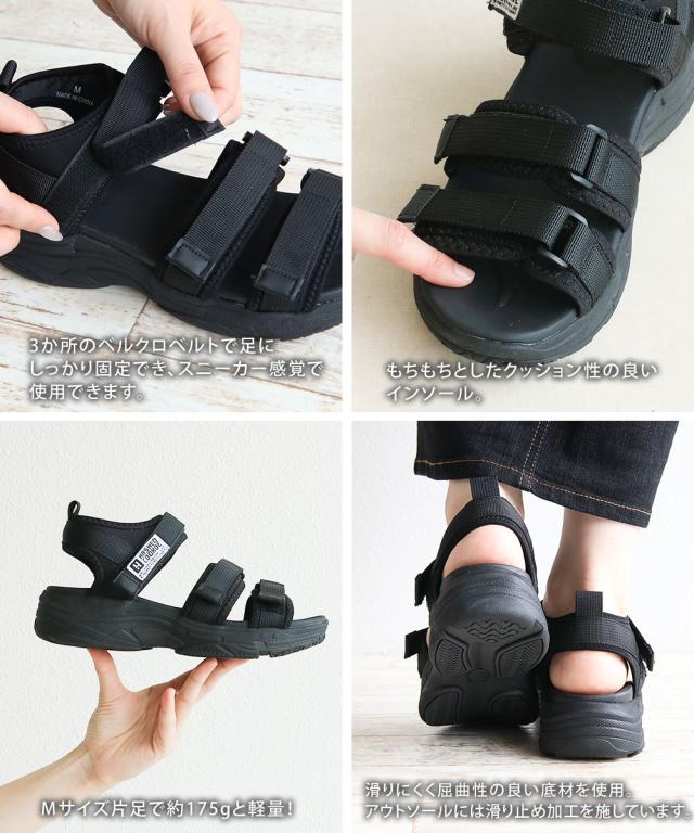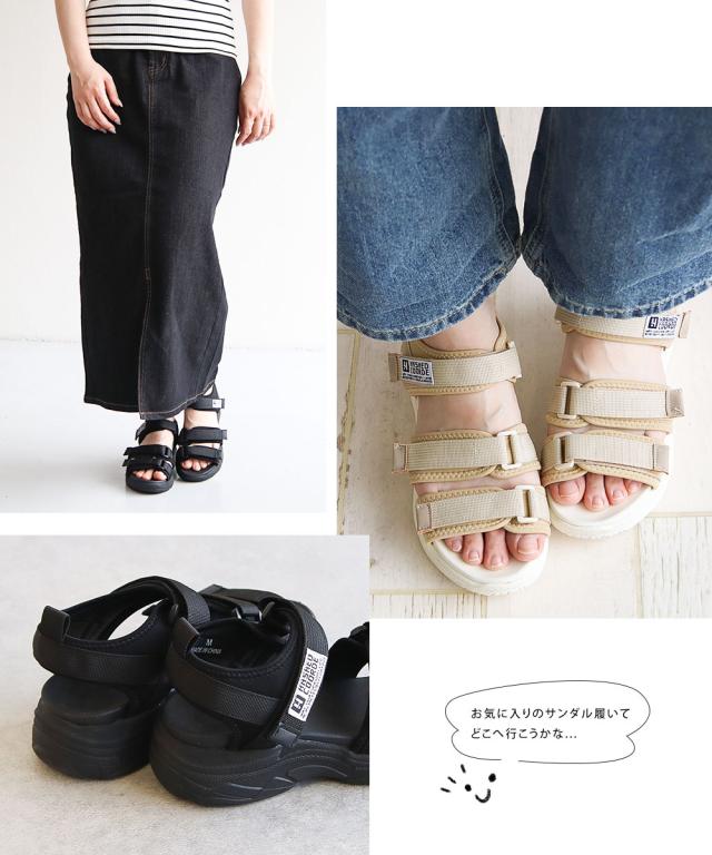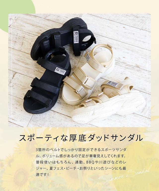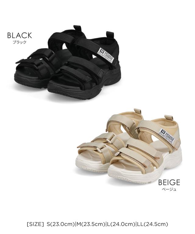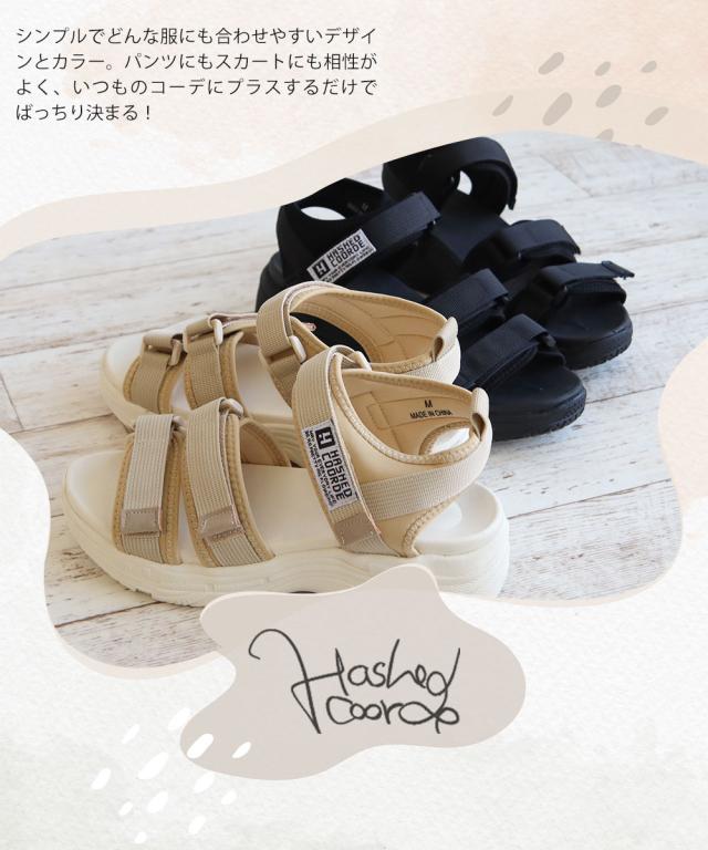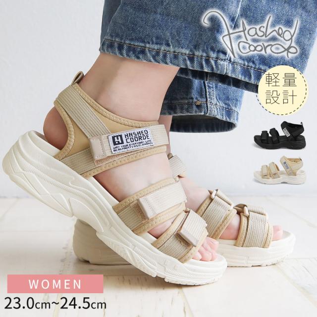 スポーツサンダル レディース 厚底 ストラップサンダル ベルクロ 軽量 歩きやすい 脱げにくい 5cmソール シンプル かわいい おしゃれ カジュアル アウトドア スポーツ 厚底サンダル スポサン 黒 ブラック ベージュ ハッシュドコーデ hc4212