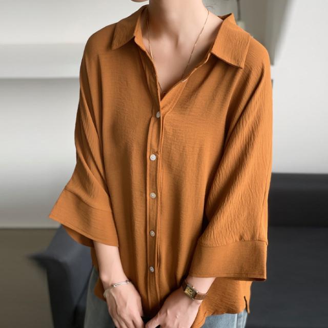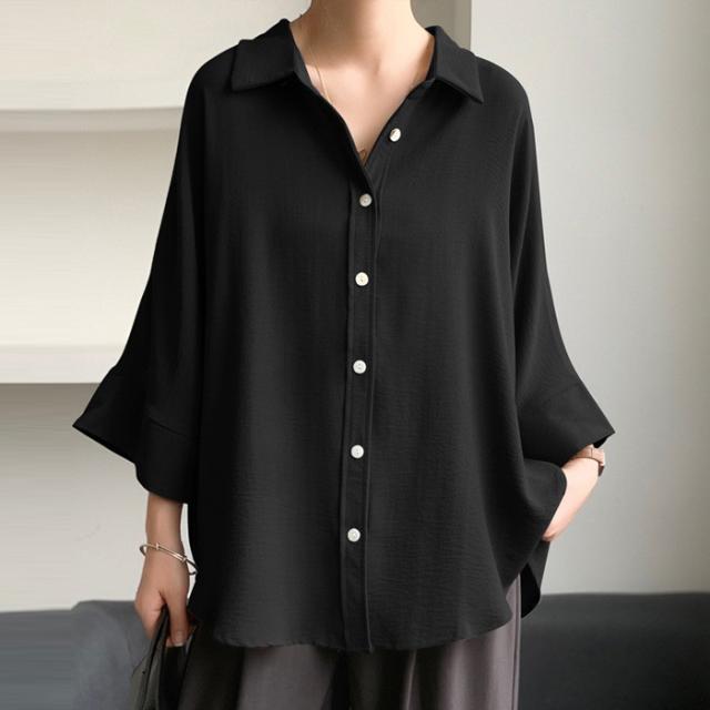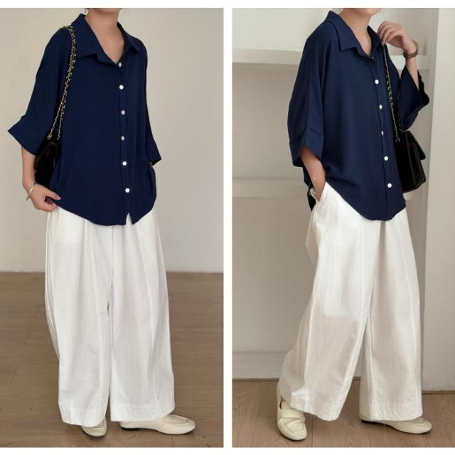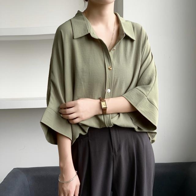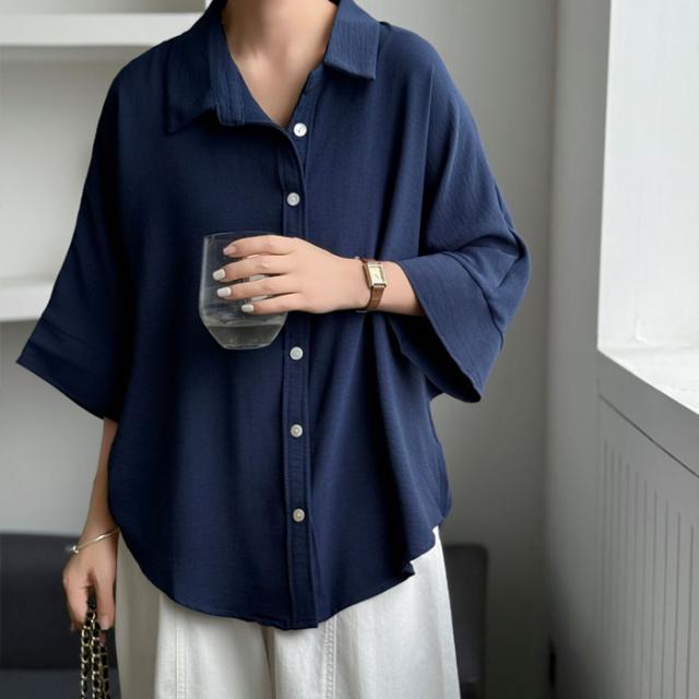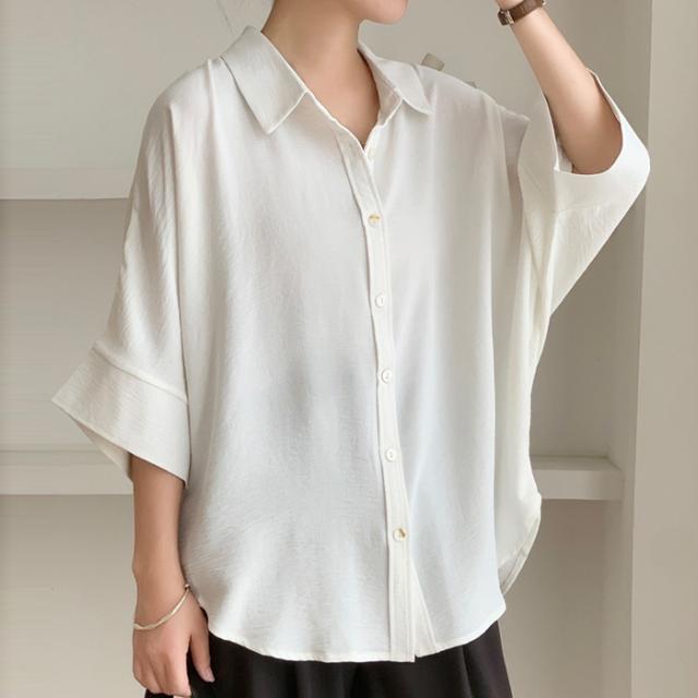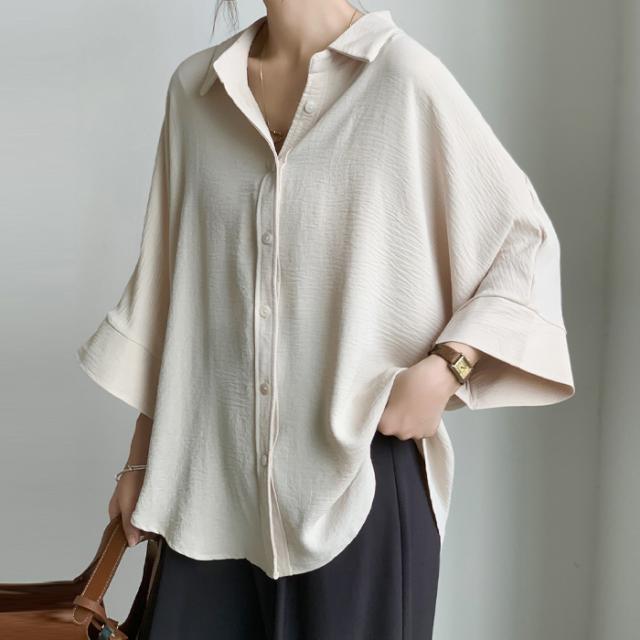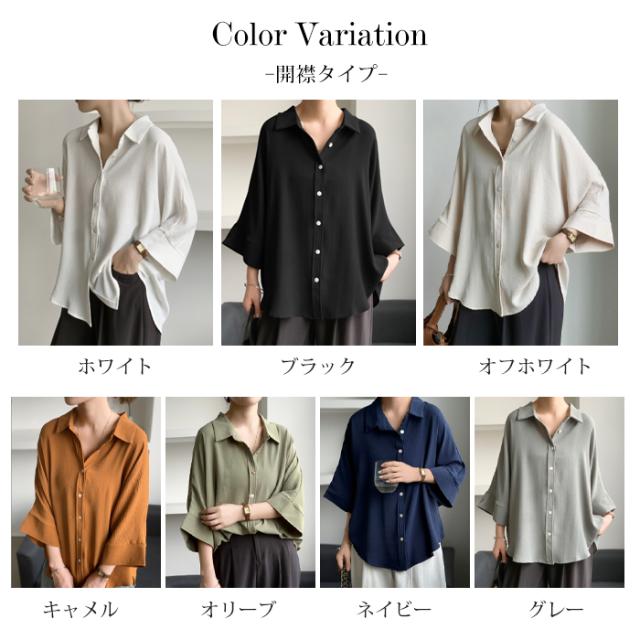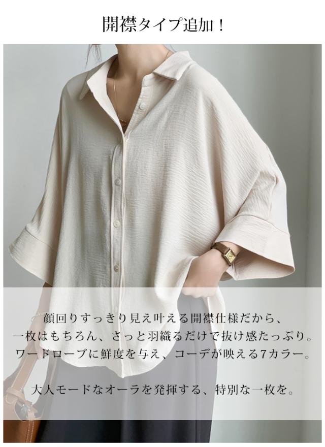 開襟タイプ追加!ブラウス ドルマンスリーブ 夏新作 新作 キーネック プルオーバー 半袖 レディース トップス シャツ ロングシャツ ゆったり 無地 体型カバー スキッパー 着痩せ 大人 抜け感 春 夏 秋 洗える カジュアル