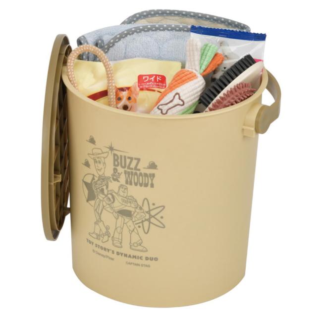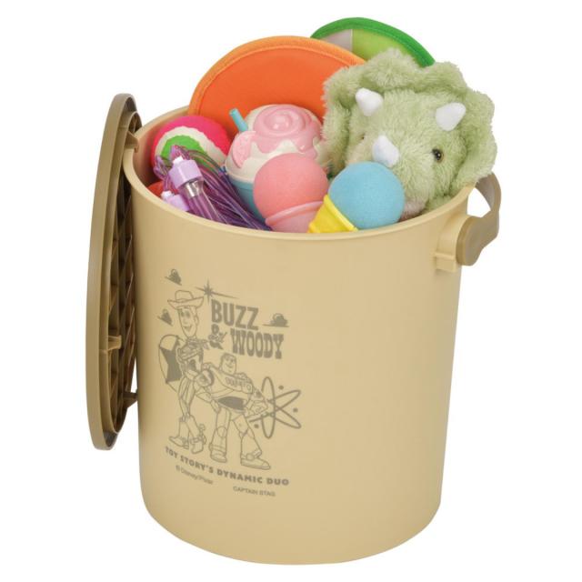 バケツ 15L ディズニー 座れるバケツ トイストーリー キャプテンスタッグ ( CAPTAIN STAG ウッディ バズ・ライトイヤー 収納ケース フタ付き 耐熱 耐冷 ツールボックス おもちゃケース 収納 レジャー用品入れ 日本製 )