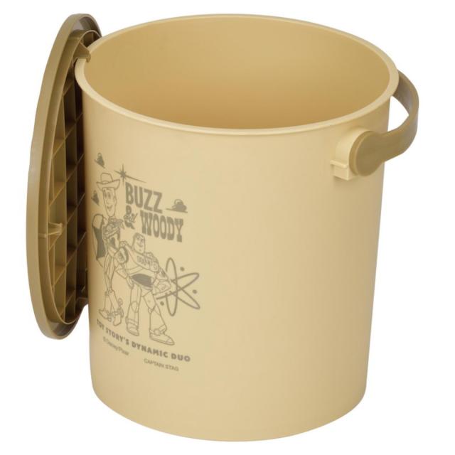 トイストーリーの絵柄がデザインされたフタ付きバケツです。耐荷重は約80kgなので、お子様から大人まで座ることができます。家事の合間やアウトドアシーンでも、ちょっとひと休みできて便利です。ソファサイドやレジャー時のちょっとした簡易テーブルとしても活用できます。