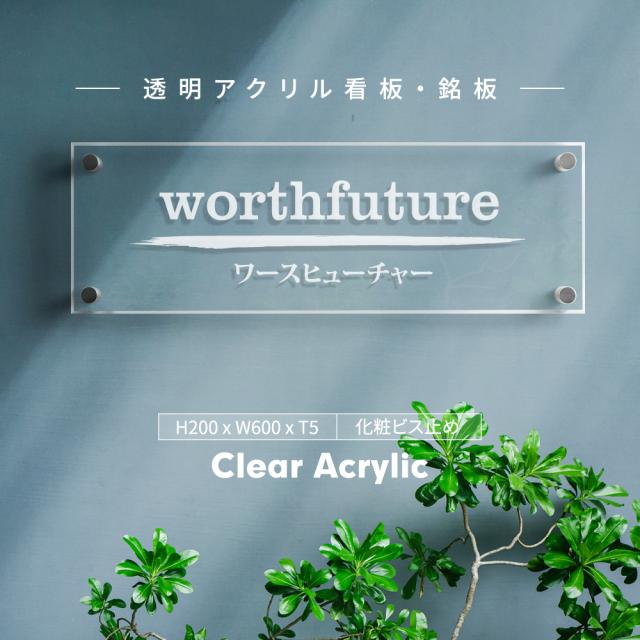 透明アクリル 看板 銘板 H200×W600×t5mmマンション 看板 美容院 高級感 会社銘板 店舗 看板 事務所サイン アクリル gs-pl-tomei-600-200