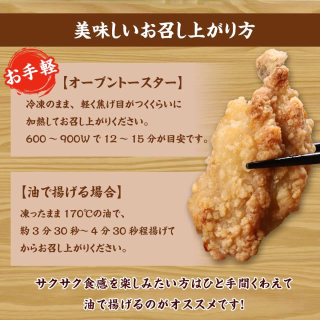 凍ったまま、170℃の油で約3分30秒〜4分30秒間揚げてお召し上がりください。