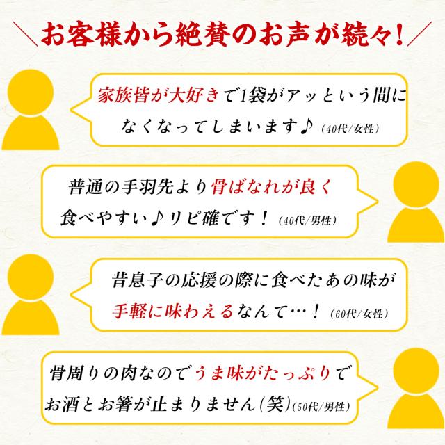 - こちら初めて購入しました。 骨付きにしては食べやすく 家族にとても好評で 今回2袋追加しました。 又リピします。