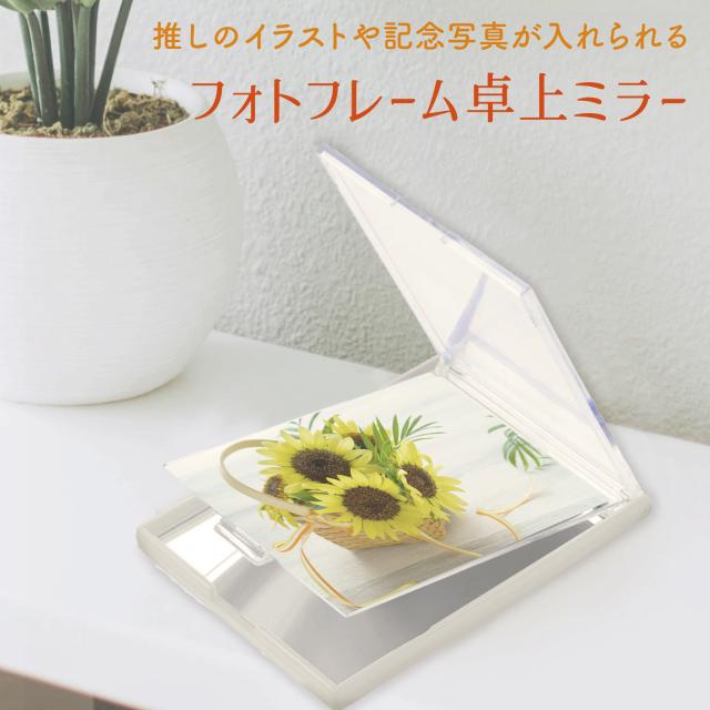 お気に入りの写真・イラストを入れられる♪ フォトフレーム付き 携帯 卓上ミラー